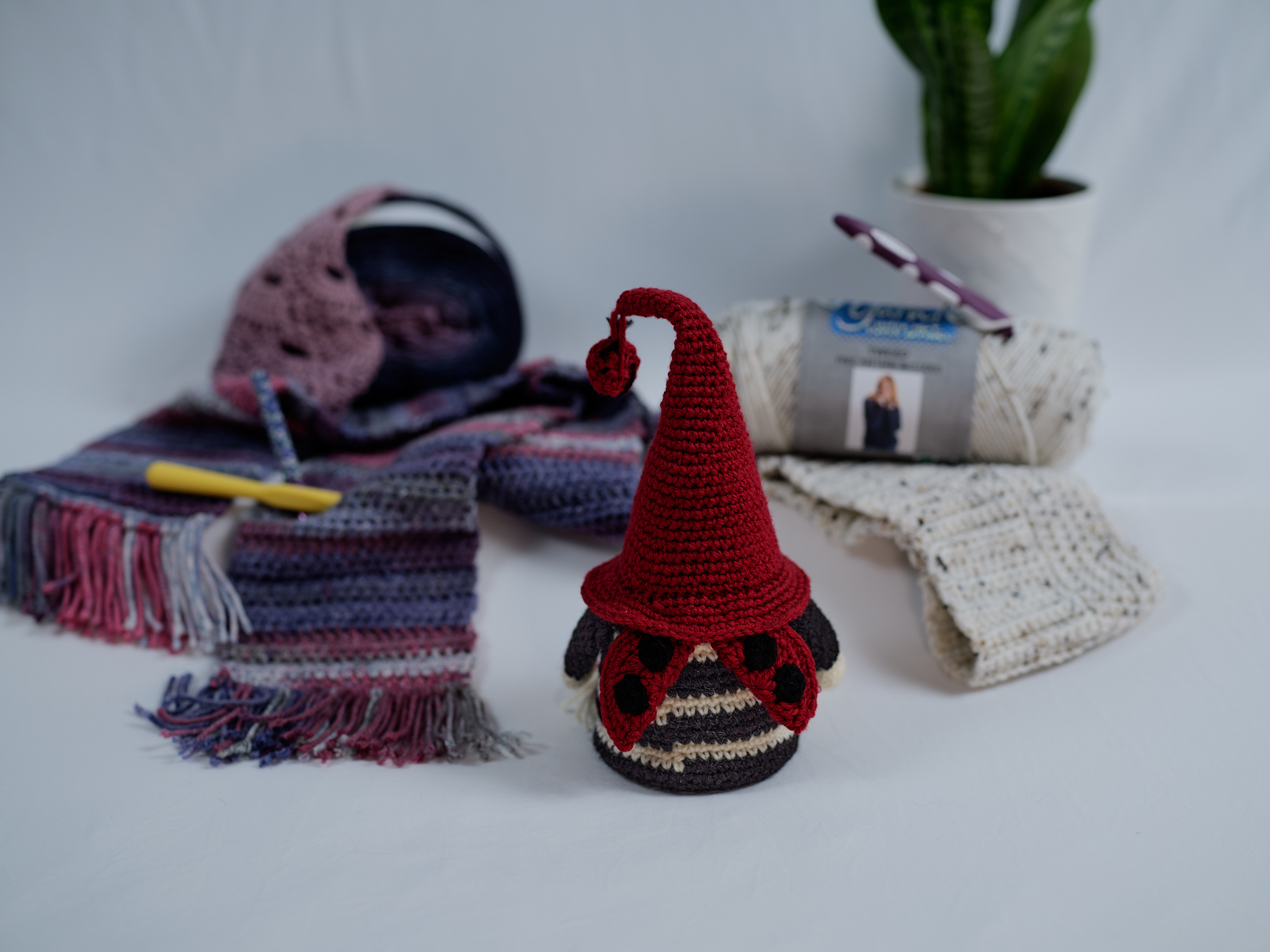 Explore handmade crocheted goodies by Cathy. Gnomes, seasonal tossers, and apparel!